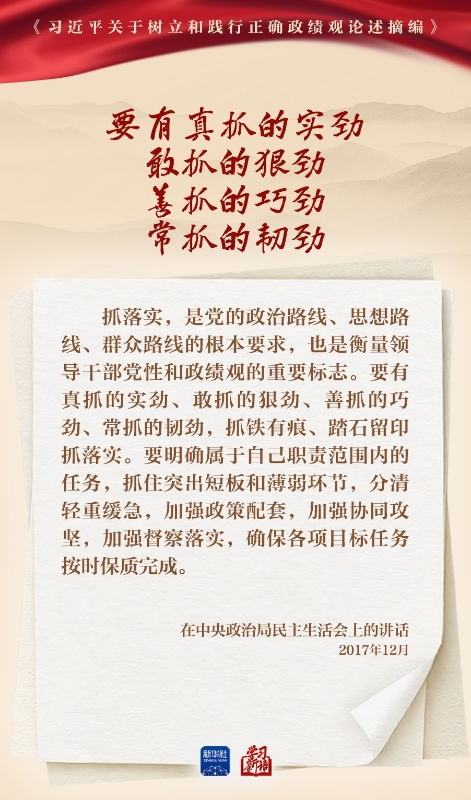 树立和践行正确政绩观学习教育正在全党开展。真抓实干,是共产党人的鲜明品格,也是成事之道。我们选取《习近平关于树立和践行正确政绩观论述摘编》一书中的相关重要论述,一起学习领会。