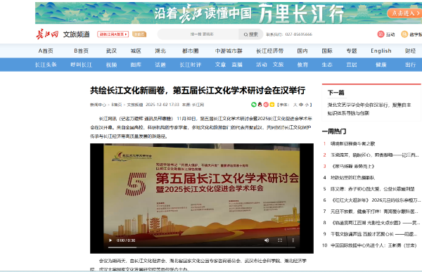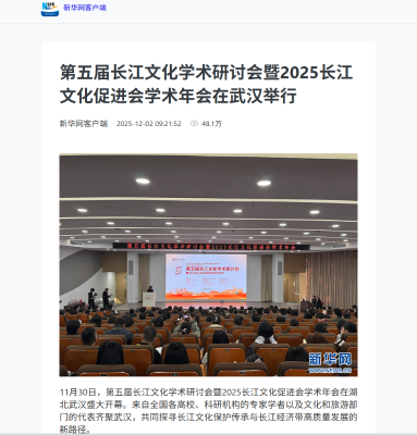 新华网:第五届长江文化学术研讨会暨2025长江文化促进会学术年会在武汉举行