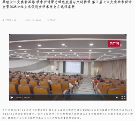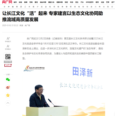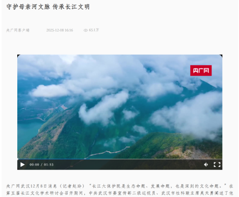 央广网:共绘长江文化新画卷 学术研讨聚力绿色发展与文明传承第五届长江文化学术研讨会暨2025长江文化促进会学术年会在武汉举行