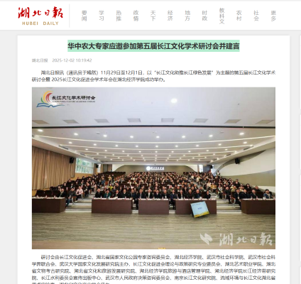 湖北日报:华中农大专家应邀参加第五届长江文化学术研讨会并建言