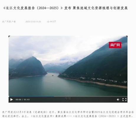 央广网:《长江文化发展报告(2024—2025)》发布 聚焦流域文化资源梳理与创新发展