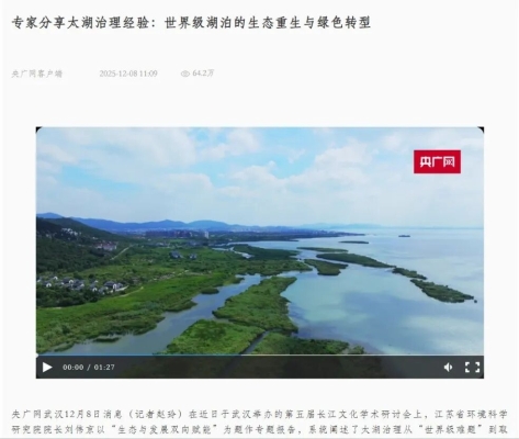 央广网:专家分享太湖治理经验:世界级湖泊的生态重生与绿色转型