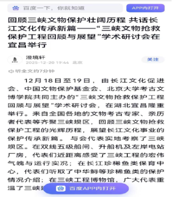 百度APP:回顾三峡文物保护壮阔历程 共话长江文化传承新篇——“三峡文物抢救保护工程回顾与展望”学术研讨会在宜昌举行