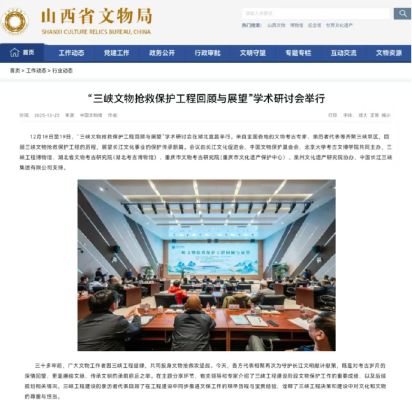 山西省文物局:“三峡文物抢救保护工程回顾与展望”学术研讨会举行