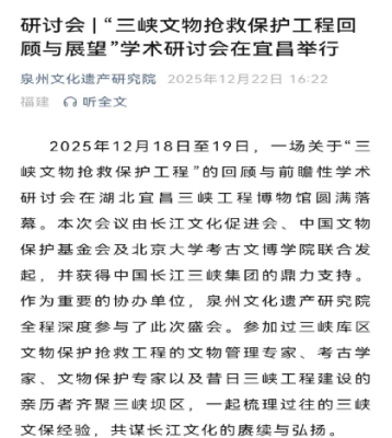 泉州文化遗产研究院:“三峡文物抢救保护工程回顾与展望”学术研讨会在宜昌举行