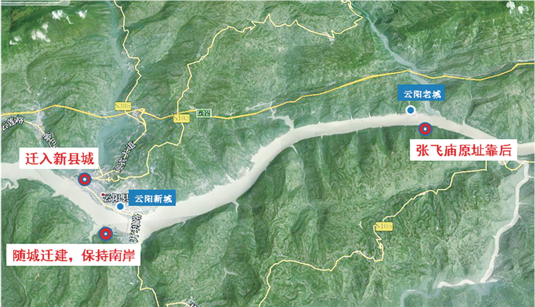 在两种方案受挫后,清华大学随后提出的“随城迁移至长江南岸”第三方案逐渐成为共识。该方案跳出“留原址”或“进新城”的二元思维,核心是在新县城对面的长江南岸勘察选址,与北岸云阳新城保持“隔江相望”的历史空间格局,最大限度延续文化价值。