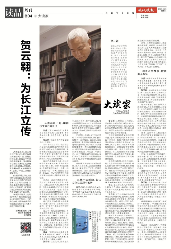 学者贺云翱从上世纪80年代开始深耕长江文化,作为《长江画传》一书的执行主编,近日他接受现代快报读品周刊专访,讲述了这本书背后的故事。