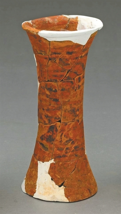 ▲湖北宜昌太平溪白狮湾遗址出土的大溪文化彩陶瓶